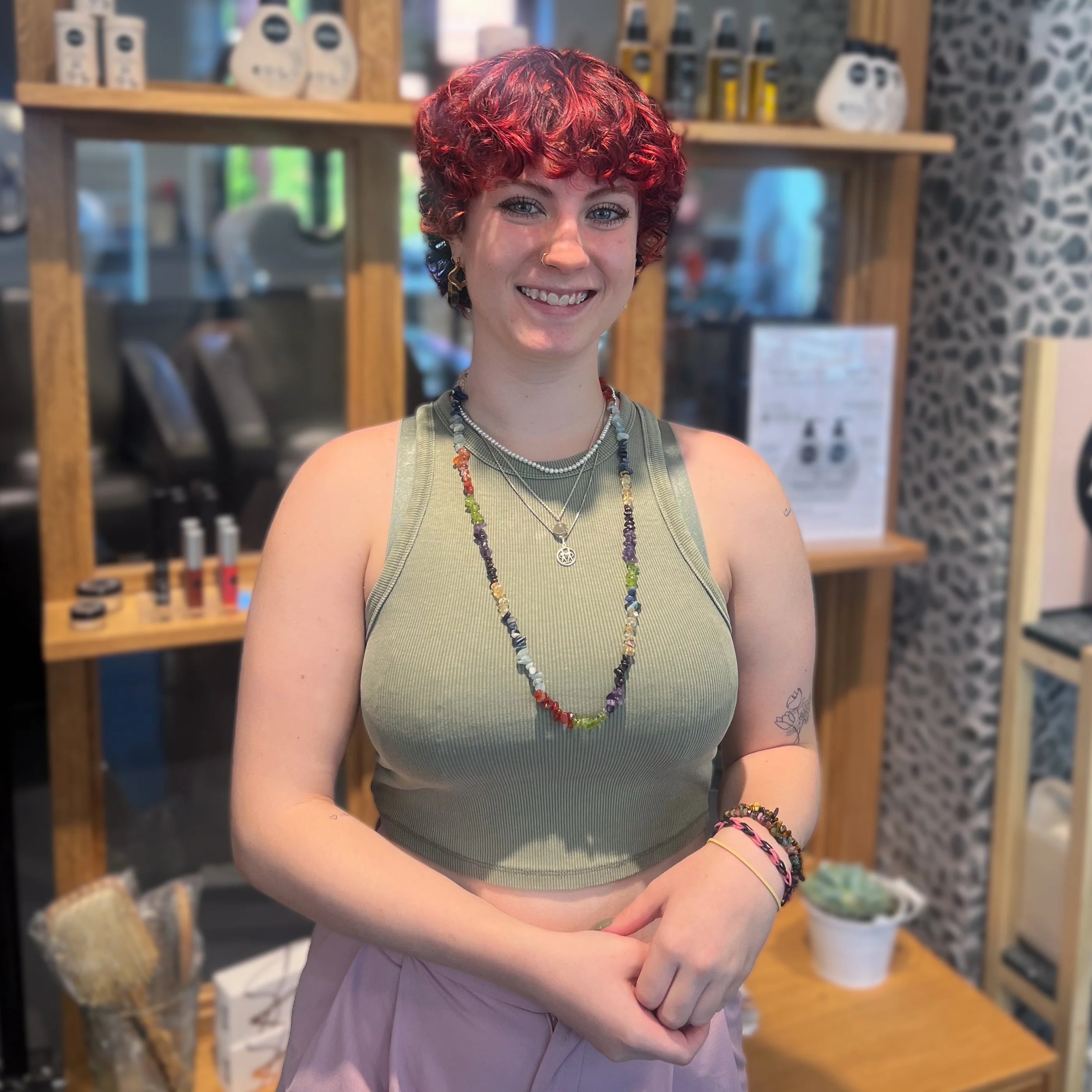 Heidi Tilgreen Nielsen har været ansat siden september 2017. Hun har en høj faglighed og arbejder koncentreret og minutiøst med hver opgave, hun går i gang med. Heidi har fra starten haft et bredt kendskab til det farvesystem, som vi som Grøn Salon arbejder med, og derfor er hun en dygtig formidler af farveteknikker til salonens elever.