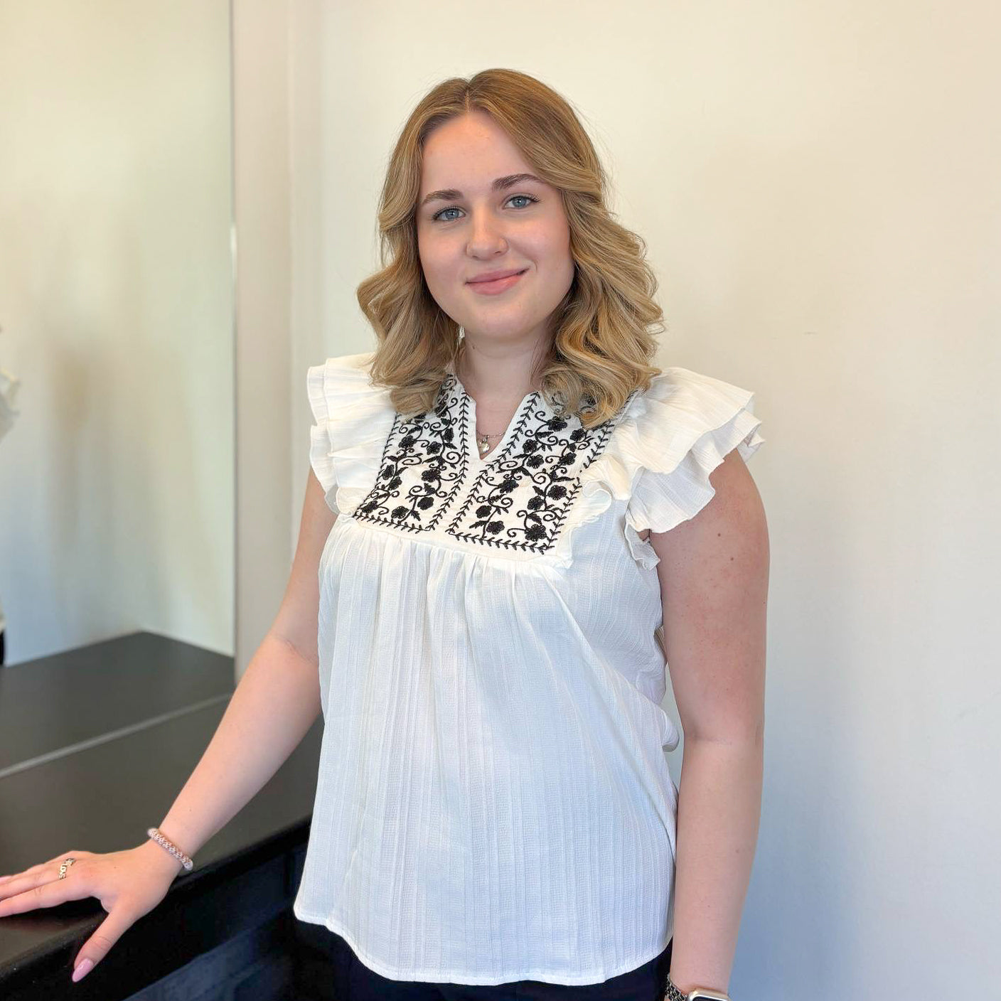 Nicoline Ancher Christiansen er vores søde og dygtige elev – en mild og smilende person, der altid sørger for, at kunderne føler sig godt tilpas og får en behagelig oplevelse i stolen. Hun er passioneret og har et særligt talent for styling. Derudover tilbyder hun bundfarve samt smukke vipper og bryn.