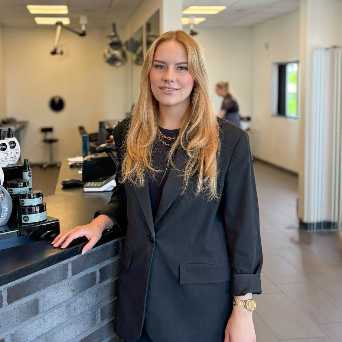 Klara Dorthea Mikkelsen er nyuddannet frisør fra Klipin og dygtig til både klip og farve. Hun har en særlig ekspertise i rådgivning om ZENZ' Svanemærkede produkter, da hun selv har sensitiv hud og reagerer på parfume og stærke ingredienser. Derfor brænder Klara for at vejlede i parfumefri og SLS-fri produkter, så du som kunde trygt kan vælge den mest skånsomme løsning til dit hår og din hud.